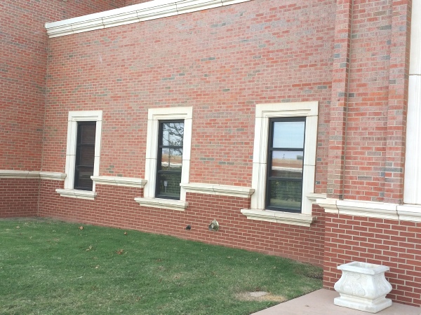 Cast stone banding is added to a building’s architecture to create a contrast with the color and texture of your brick, stone or other masonry. The use of horizontal or vertical rows of cast stone banding throughout the brick veneer helps define wall sections and spaces, and add depth, color and distinction to the design.