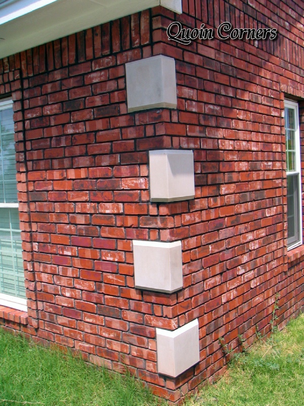 Quoins are visually appealing ornamental accents to corners in masonry construction. Quoins can be formed