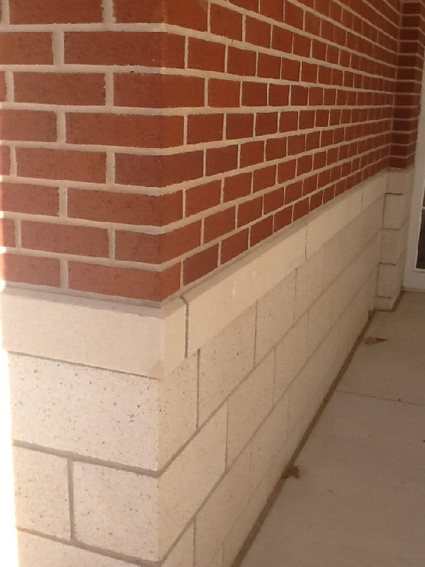 by a series of masonry units near and at a corner differing in size, color, finish or material from the adjacent